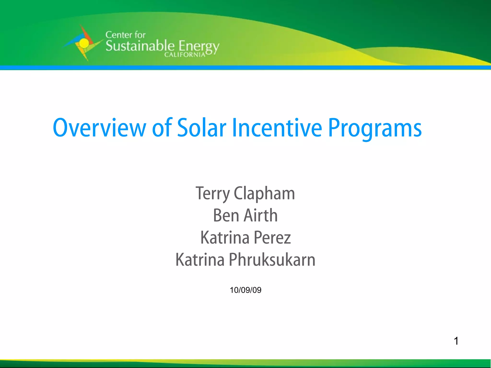 - Overview of Solar Incentive Programs | PPT
